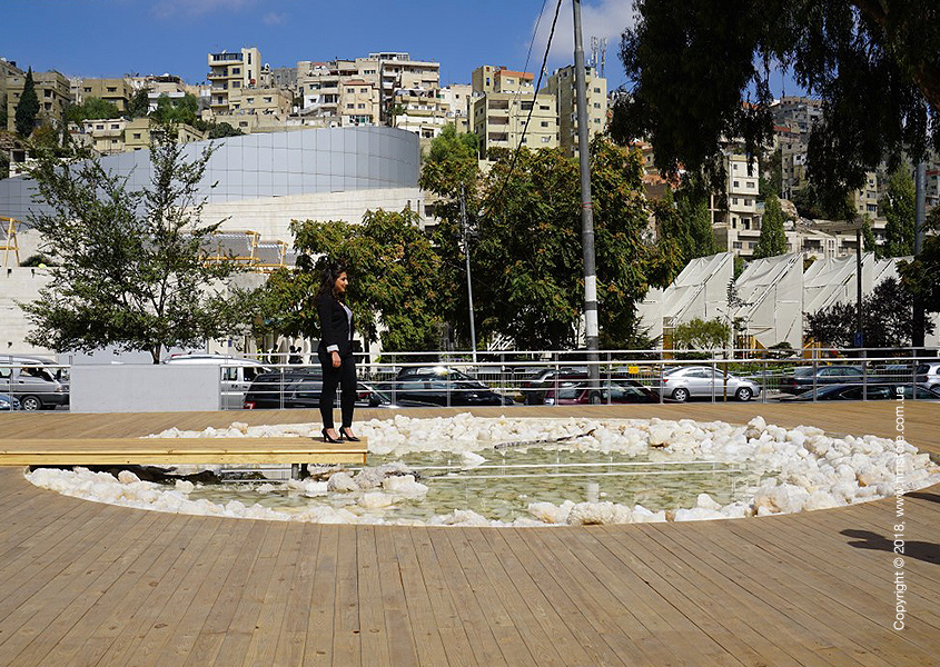 Инсталляция Amal Ayoub отражает, как Мертвое море со временем теряет свои воды в связи с коммерческим злоупотреблением. В течение 40 минут это мини-озеро наполняется водой и самостоятельно «истощается» за считанные минуты.