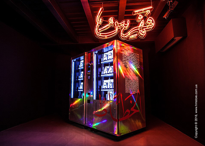 Торговый автомат от «eyen» позволял купить «файл шрифтов», предлагая на выбор аутентичные предметы арабской каллиграфии, а в ответ вы поддерживаете постепенно исчезающее мастерство.