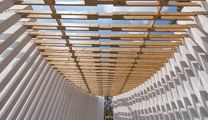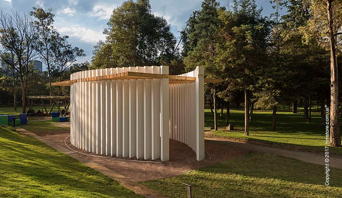 Спроектированный мексиканской студией «Materia», павильон «Tamayo Pavilion» в саду музея «Museo Tamayo» отличается двумя изогнутыми рядами белых бетонных колон, которые объединены сверху балками из сосновой древесины. Это место создавалось специально для созерцания и размышления.