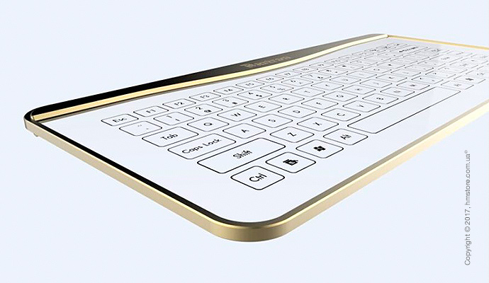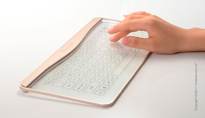 Третья версия клавиатуры «Bastron Transparent Touch Glass Keyboard» (с мышкой и функцией распознавания жестов) доступна в золотистой отделке ($89) или с серебристым ободом (немного дороже). Кроме того, вы также можете отдельно купить стеклянный тачпад.