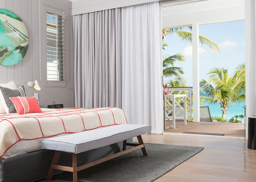 Отель был декорирован дизайнером Guillermo de Yavorsky. Современная интерпретация карибского стиля только подчеркивает красоту окружающей природы. Декор Coral Sands отличается успокаивающими, монохромными и ненавязчивыми деталями – теплые серые тона, натуральные ткани и дерево, и все это – на белом фоне с незначительными акцентами кораллово-красного и неброского зеленовато-голубого.