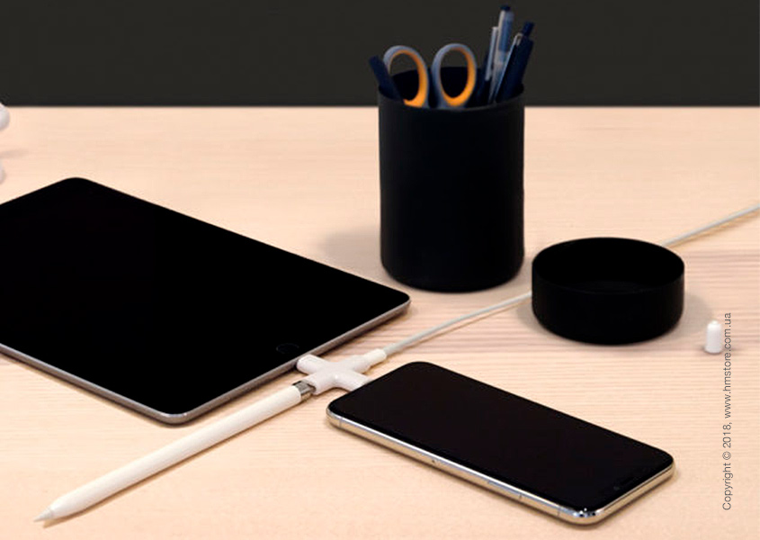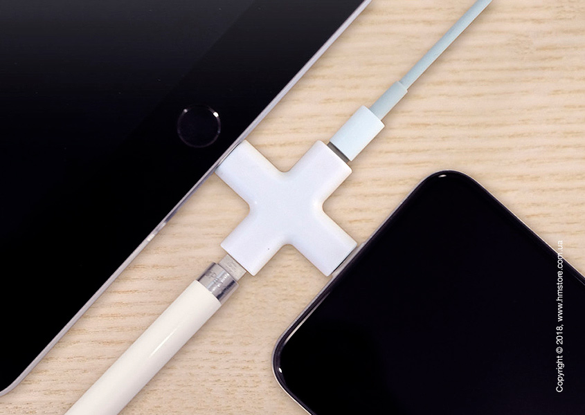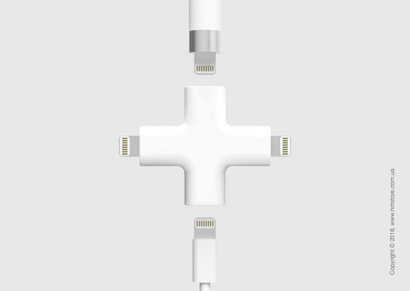 Дизайн этого коннектора невероятно прост – крестовидное устройство включает 2 входа и 2 выхода Lightning, позволяющие легко подключать и заряжать Apple Pencil, iPad, iPhone, iPod и даже мышь Apple Magic Mouse от единого источника питания. Особенно стоит отметить аккуратный и невероятно компактный и портативный дизайн.