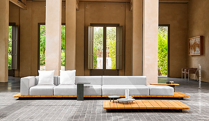 «PAL» – это модульная система, которая имеет прочные тиковые платформы для обитой мебели, на которой можно удобно разместиться для отдыха. Вы можете обустроить свою собственную современную уличную гостиную благодаря множеству разнообразных комбинаций.