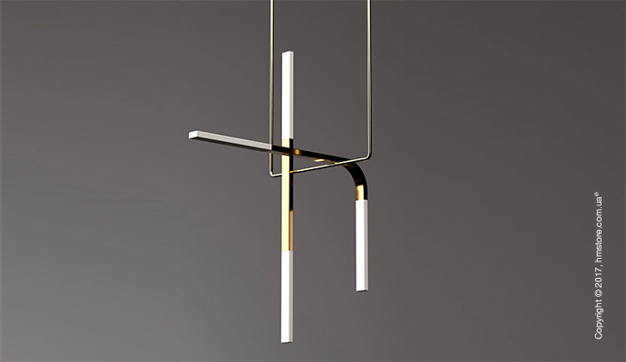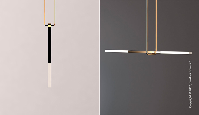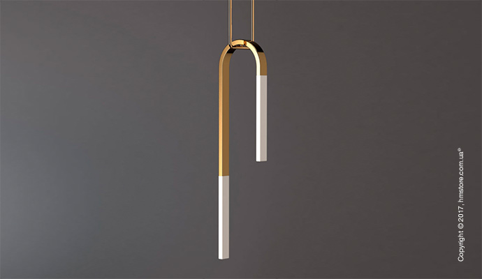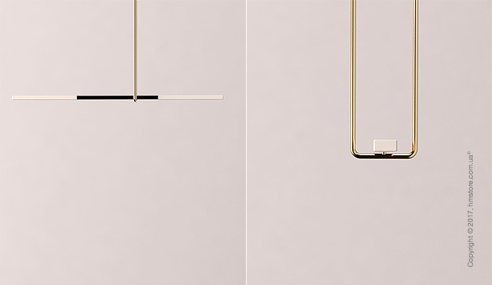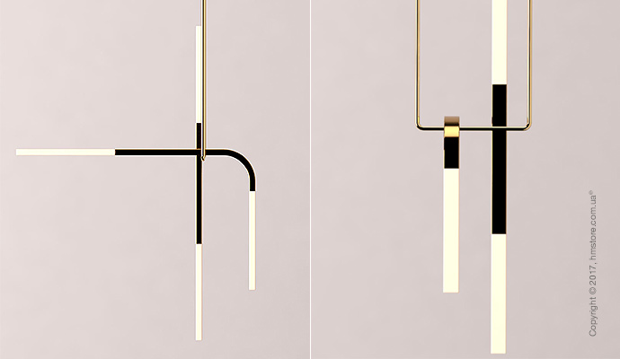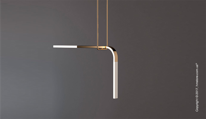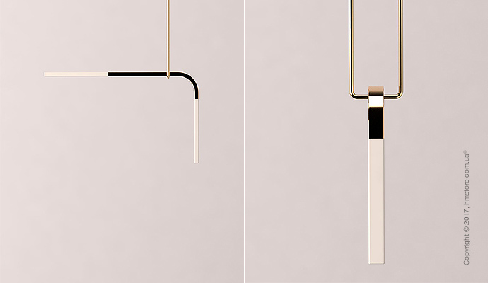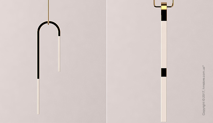 «Forward Bend» имеет немного более сложную структуру, чем «Back Flip», поскольку металлический элемент изогнут на 180°, а абажуры направлены вниз параллельно друг другу.