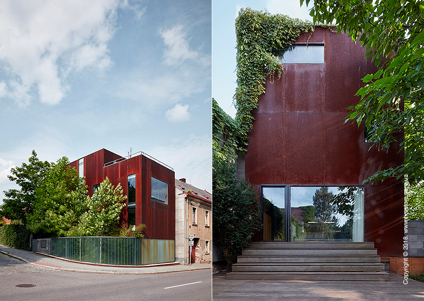 В небольшом городке Гумполец (Чехия) расположен дом «Rusty House», ставший проектом для Luděk Rýzner из «OK PLAN ARCHITECTS» после того, как хозяева решили обновить интерьер, в котором они прожили 12 лет. Дом был построен в 2005 году на небольшом участке земли, что требовало креативных решений. Оригинальный дизайн отличался бетонными полами, открытыми стальными структурами, потолками из гофрированного металла. Все это создавало современный вид в стиле индастриал. Со временем хозяева решили, что они хотят немного сократить необработанный, промышленный стиль интерьера главного этажа и смягчить остальные комнаты в доме.