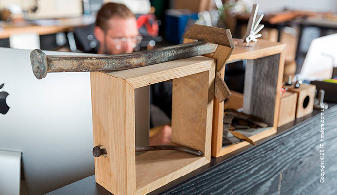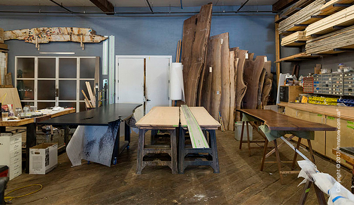 В этой студии сложно найти произведения искусства. В основном здесь встречаются фотографии природы и предметы, которые послужили вдохновением для коллекций, которые уже были созданы. Кроме того, сложно не заметить канат от баржи, который стал ключевой «инсталляцией» в офисе. Сотрудники постоянно окружены прототипами, моделями и образцами материалов – все это служит мини скульптурами, разбросанными по всему офису. В этой студии также есть собственная полноценная мастерская для работы с деревом и металлом, включая станок с ЧПУ.
