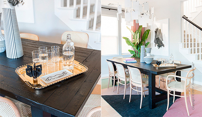 Еще одной задачей перед дизайнерами стояло сохранение в интерьере массивного черного обеденного стола. И они смогли замечательно внедрить его в светлый интерьер.