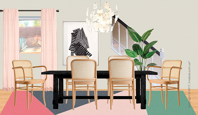 Стулья к обеденному столу «Hoffmann», созданные Josef Hoffmann еще в 1920-х годах. Помимо того, что эти стулья невероятно удобные, они еще и добавляют помещению тепла и текстуры.