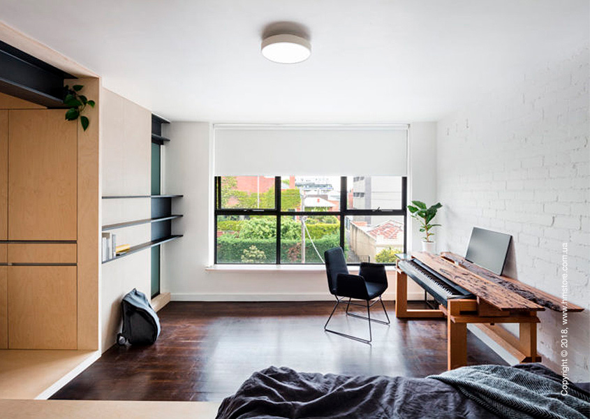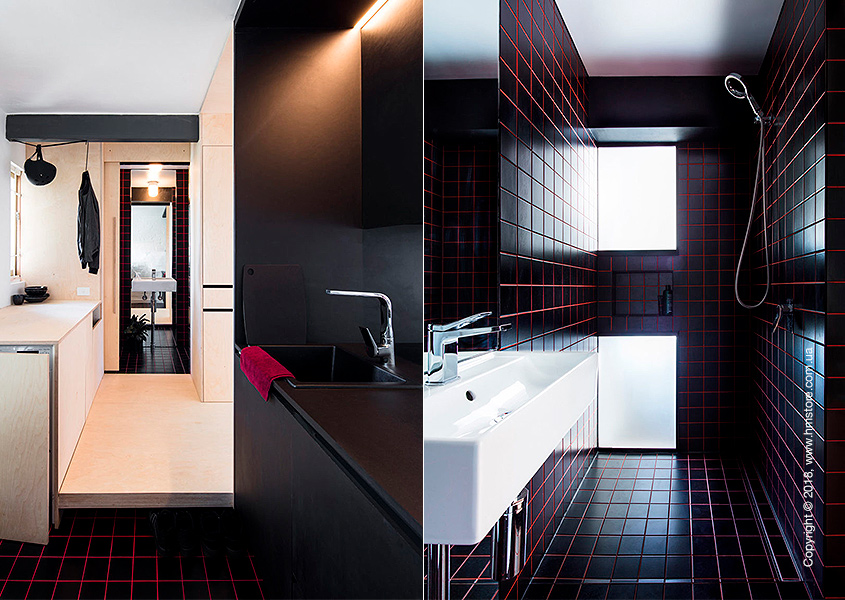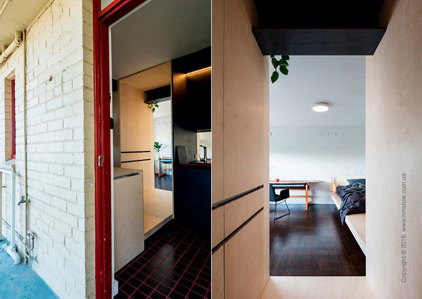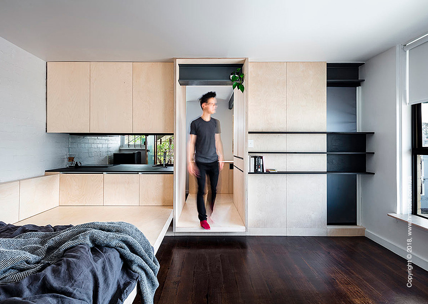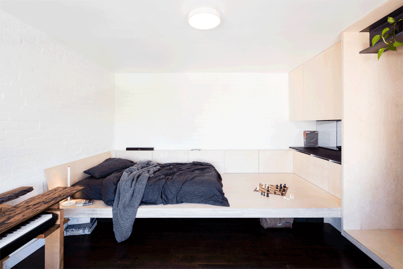 «George» – это одна из нескольких идентичных квартир-студий, в которых в 1950-х годах жили медсестры в Мельбурне (Австралия). Площадь этой квартиры всего 28 кв.м., и она сильно нуждалась в капитальном ремонте, который позволил бы сделать ее пригодной для современных стандартов жизни. Эту задачу взялся выполнять Douglas Wan из «J-IN». Все внутренние стены были снесены, а затем установлены новые стальные балки, благодаря которым интерьер больше не нуждался в несущих конструкциях, которые бы поддерживали потолок. Это сделало помещение открытым для любых планировок.