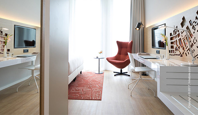 «Пасхальные яйца» можно найти по всему отелю – «JOI-Design» внедрили здесь различные произведения искусства, узоры на стеклянных перегородках, мебель и декор. На одной из стен можно увидеть трехмерное слово «ИСТОРИЯ». Все эти детали указывают на понятие времени, пространства и истории.