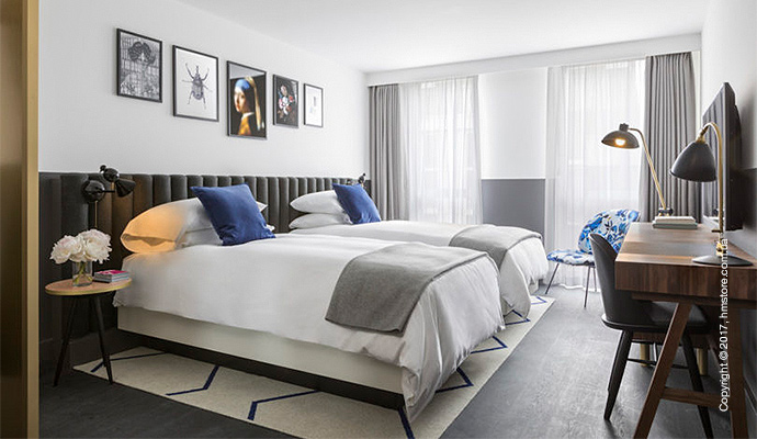 В отеле 274 номера, включая 15 фирменных номеров, расположенных в оригинальном здании 17-го века. Спальни отличаются полами из дуба, разноцветными стенами, элементами из бархата и латуни, а также произведениями искусства.