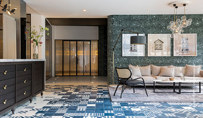 Общие помещения оформлены таким образом, что в них также хочется проводить много времени. Здесь можно найти множество зон отдыха. При входе в отель вас встречает сине-белая плитка, навеянная традиционным нидерландским дельфтским фаянсом. Здесь также находятся удобные скамейки, стульчики, мраморные приставные столики, подушки и покрывала для чтения и отдыха. Помещения освещают разнообразные оригинальные лампы, которые также подсвечивают произведения искусства на стенах.