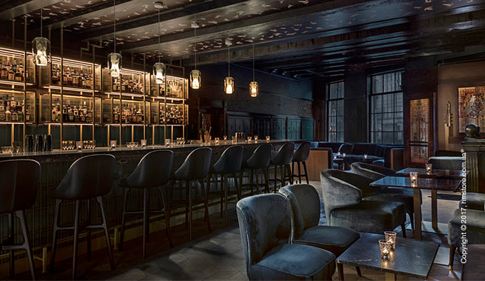 Отель также отображает историю здания. Бар «House Bar» расположен в здании «Queen of Holland», в котором до сих пор сохранены оригинальные балки и деревянные настенные панели. В помещении преобладают темные тона, а сиденья обиты бархатом. Все это создает слегка меланхоличную, но, в то же время, уютную атмосферу.