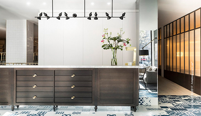 Архитекторская компания «Michaelis Boyd» создает роскошные интерьеры для отелей, сочетая традиционный и современный дизайн. Их последним проектом стал отель «Kimpton de Witt» в Амстердаме. Он отличается забавной и, в то же время, навеянной архитектурой дизайнерской эстетичностью. Здесь можно найти современные зоны отдыха и фойе, а также номера с безупречным дизайном.