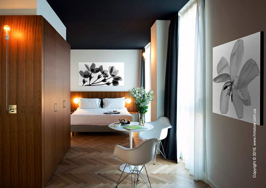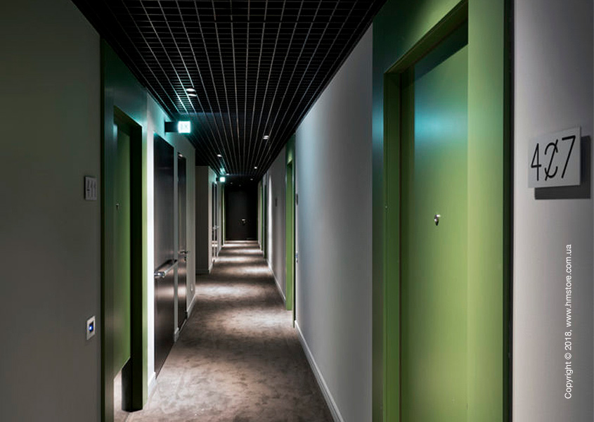 Внутри отель выполнен в стиле минимализма с простой цветовой палитрой серого, белого и зеленого, а также сочетанием мебели из 1950-х годов и современных предметов. Общие зоны отличаются меланхоличным дизайном, а номера выполнены в светлых тонах.