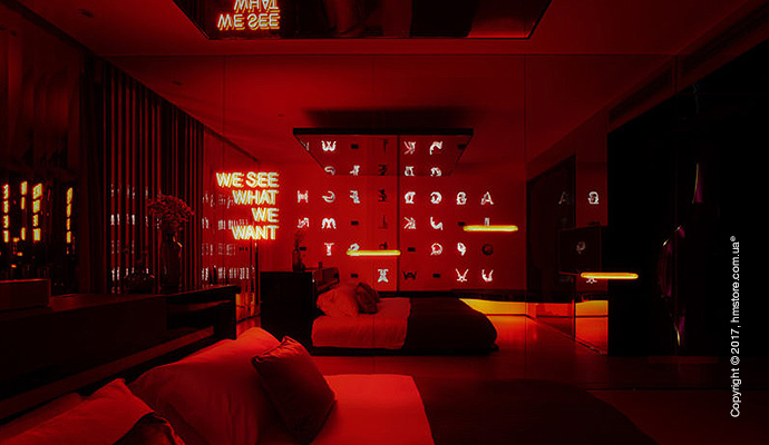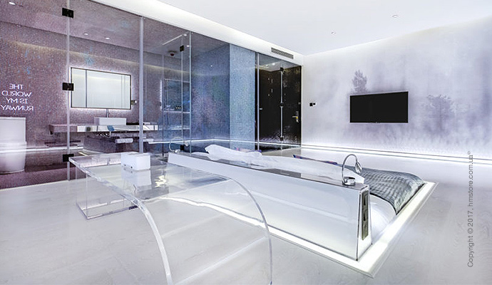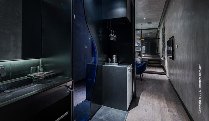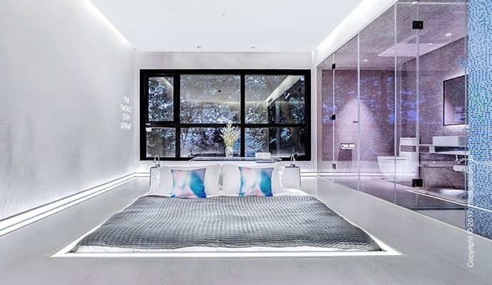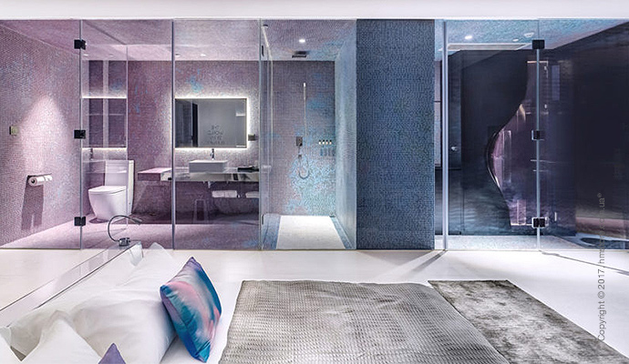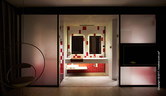 Номер «Exposure» (обнажение) позволит полностью освободиться от любых запретов. Кроме входа и ванных комнат, весь номер полностью прозрачный изнутри благодаря огромным окнам от пола до потолка.