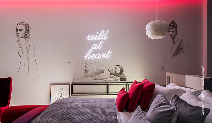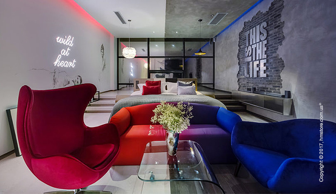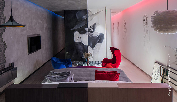 Номер «Romance» (романтика) отличается комфортным интерьером, приглушенным светом, тонкими шторами и полупрозрачной спальней. Мини-бар и домашний кинотеатр помогут настроиться на нужный лад для уютной ночи.