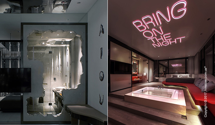 По замыслу дизайнерской компании «LYCS Architecture», 33 номера в отеле категоризированы в соответствии с основными человеческими потребностями и помогают создать нужные ощущения для пар, не являясь при этом слишком навязчивыми. Отель разделен на пять категорий: нарциссизм, давнее вожделение, обнажение, фантазия и романтика.