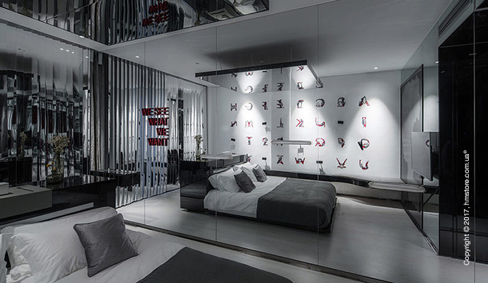 Номера в категории «Narcissism» (нарциссизм) включают зеркала в качестве инструмента для создания определенной атмосферы и, в то же время, визуального увеличения пространства. В номере есть три ключевых предмета мебели – мини-бар, стол и кровать.