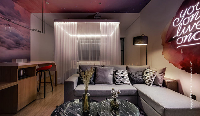 Расположенный в Ханчжоу (Китай) возле озера Сиху, отель «Mylines Hotel» был недавно обновлен, и теперь имеет уникальную тему. Интерьер, экстерьер, масштаб, планировка, звук и освещение – все в этом отеле фокусируется на том, чтобы активизировать четыре незаменимых ощущения – расслабление, романтика, облегчение и страсть.