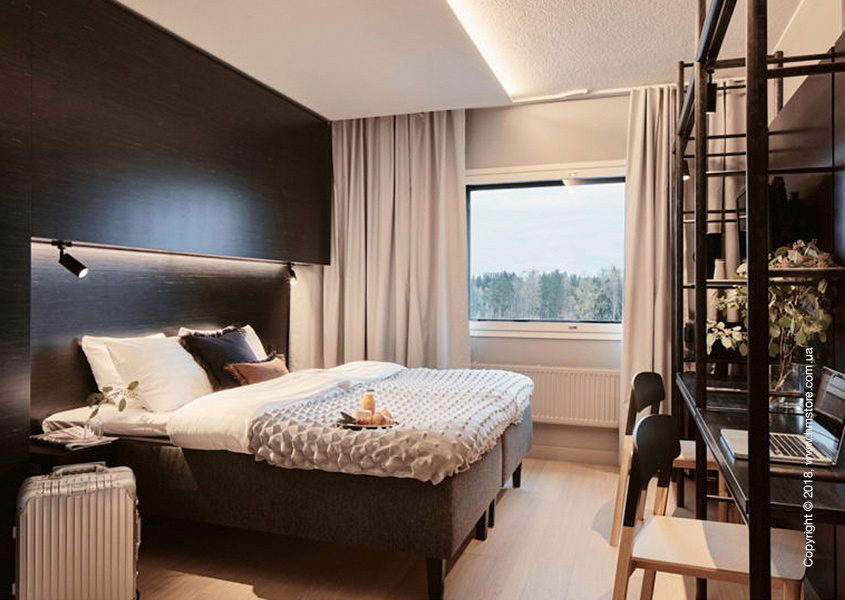 Даже если вы любите путешествовать, вы вряд ли любите отели при аэропортах. Они, как правило, отличаются бежевыми стенами, устаревшими удобствами и голыми номерами без какого-либо уюта. Они всегда рассматриваются как временное пристанище – необходимая, но нежелательная остановка. Однако, финская студия дизайна интерьера Fyra решила изменить такое положение дел. Недавно они завершили работу над редизайном интерьера отеля Cumulus Resort Airport Congress Hotel, расположенного возле Аэропорта Хельсинки, подняв, таким образом, планку для всех отелей при аэропортах.
