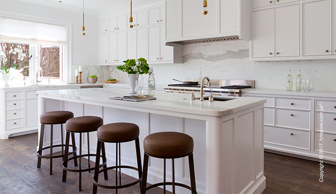 Кухни, как правило, очень требовательны в плане освещения. По словам David Armour, помимо того, что на ней должно быть достаточно яркое освещение для приготовления блюд, здесь также должно присутствовать и «декоративное» освещение, для приятного времяпровождения. Постарайтесь увеличить натуральное освещение в светлое время суток, рассчитайте адекватное направленное освещение и «разбавьте» все это комфортной «подсветкой» для случаев, когда все дела уже сделаны.