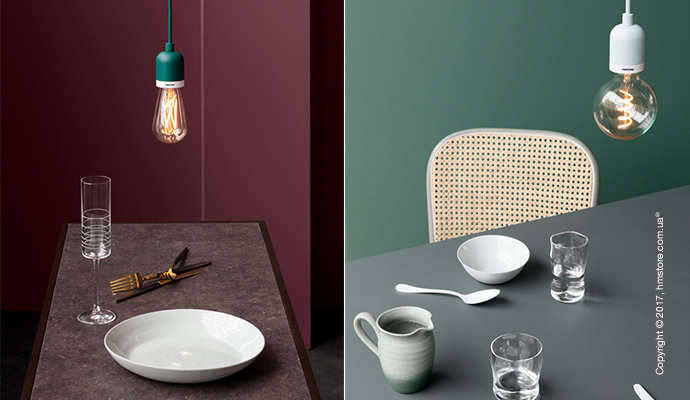 Подвесные лампы «Denab» представляют собой минималистские лакированные патроны типа E26/E27 с белым кольцом на краю, которые подвешены на 3-метровый тканевый кабель. «Denab» доступны в шести цветах, и их можно сочетать с тканевыми или фетровыми абажурами.