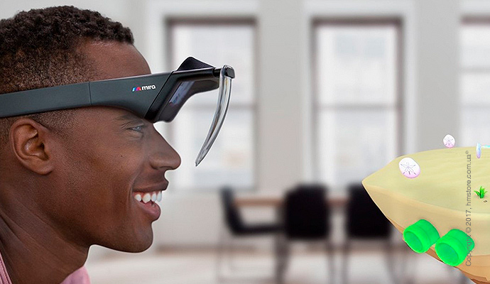 «Mira Prism» – это девайс, позволяющий ощущать дополненную реальность не через камеру телефона, а через специальную гарнитуру, которая проектирует контент с экрана вашего телефона на «очки», расположенные прямо перед вашими глазами. И чем лучше экран вашего телефона (яркость, контрастность), тем лучше получаемая голограмма.