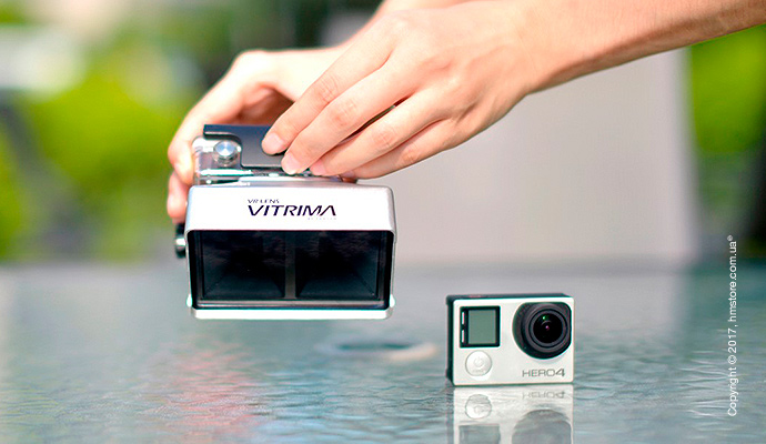 Объектив «Vitrima Lens» представляет собой нестандартный корпус, который фиксирует «GoPro» и мгновенно разделяет видеопоток на два отдельных канала, превращая стандартную двухмерную камеру в девайс, записывающий трехмерное видео, которое можно потом просматривать с помощью шлема виртуальной реальности. Однако, все не так просто. Нельзя просто взять видео и разделить его пополам, чтобы создать 3D-контент. «Vitrima Lens» использует разумное расположение зеркал, которые обеспечивают одинаковую съемку с обоих каналов. Кроме того, передняя стеклянная панель имеет антибликовое покрытие, которое обеспечивает отсутствие отражений и вспышек, портящих контент.