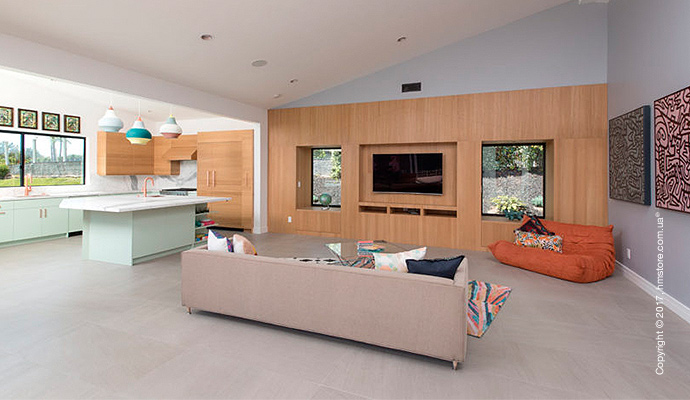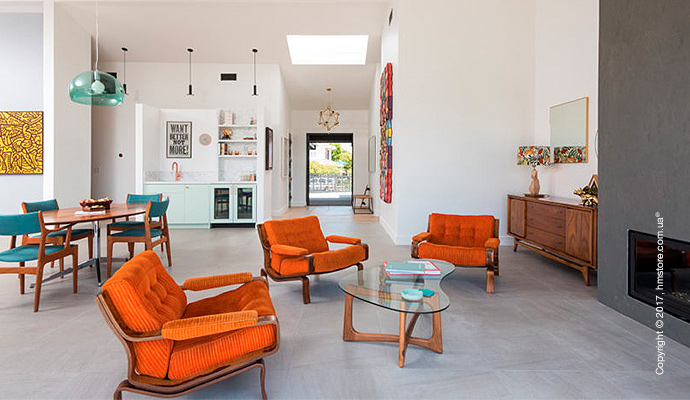 Высокие потолки и новая открытая планировка придает интерьеру ощущение просторности. Открытая гостиная имеет свое продолжение во дворе, благодаря чему стирается грань между интерьером и улицей.