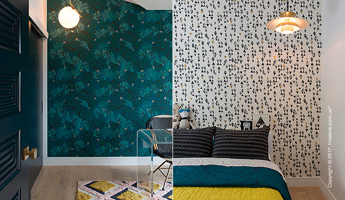 В гостевой спальне были использованы обои от «Hygge & West», созданные дизайнером Lisa Congdon.