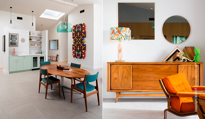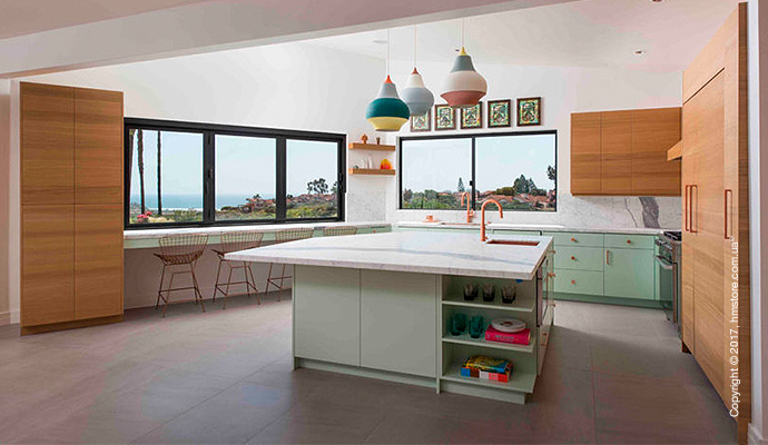 Благодаря студии «Handsome Salt» интерьеры получили роскошное современное обновление, которое отличается уютом и удобством. Эклектичная цветовая гамма включает яркие акценты, а также нейтральные тона. В кухне нижние шкафчики мятного цвета отлично сочетаются с дубовыми верхними шкафами. Все это довершается деталями из меди, которые создают стильную, современную эстетику.