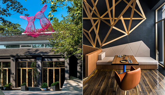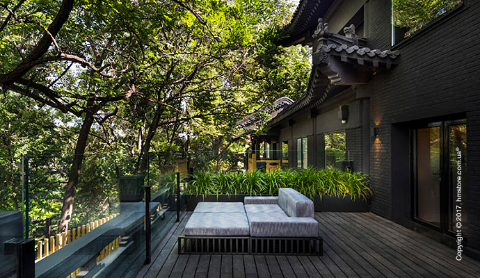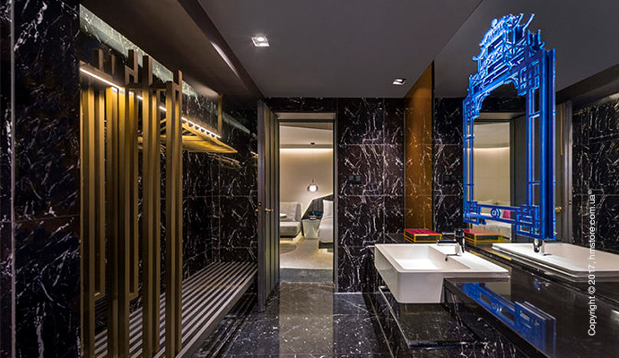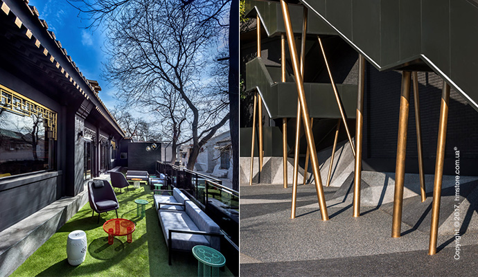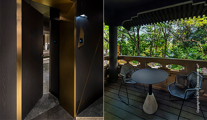 Помимо этого, можно убедиться, что студия «Ministry of Design», занимавшаяся дизайном и художественным направлением в отеле, позаботилась о сохранении определенного уровня аутентичности. Декоративные карнизы крыши, горгульи и окна с решетками, которые являются квинтэссенцией китайского архитектурного стиля и подхода, также присутствуют в этом отеле. Все здания окрашены в темно-серый цвет с золотыми акцентами, и эта тема продолжается внутри отеля.
