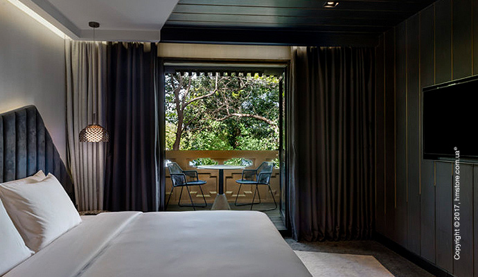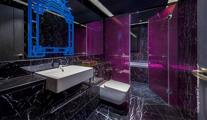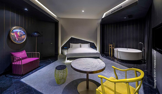 Внутри номеров пространство разделено цветами, тонами и материалами. Художественные инсталляции и элементы флуоресцентных цветов продолжают общую тему отеля. В то же время, зоны для сна выполнены в стиле минимализма, а ванные комнаты отличаются более ярким подходом.