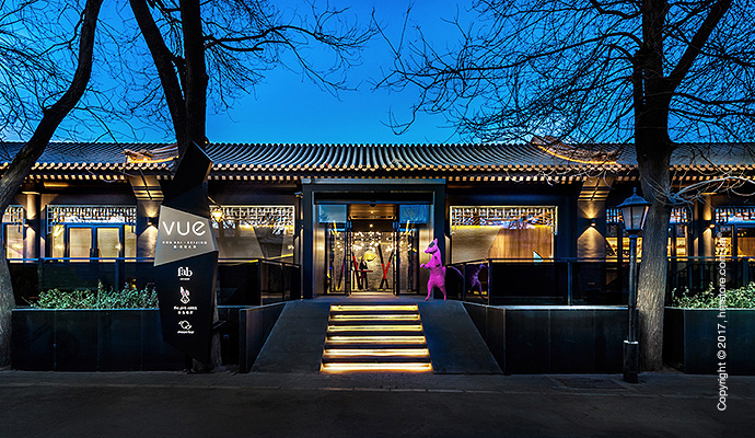 Первым расположением для отеля «Vue Hotel» стал район Хоухай в Пекине. Этот отель абсолютно не похож на то, что обычно встречается в Китае. Он был навеян озером Хоухай и его обитателями, что можно сразу заметить по человекоподобным скульптурам лисиц, кроликов и оленей, которые встречают вас в виде флуоресцентных фигур при входе в отель.