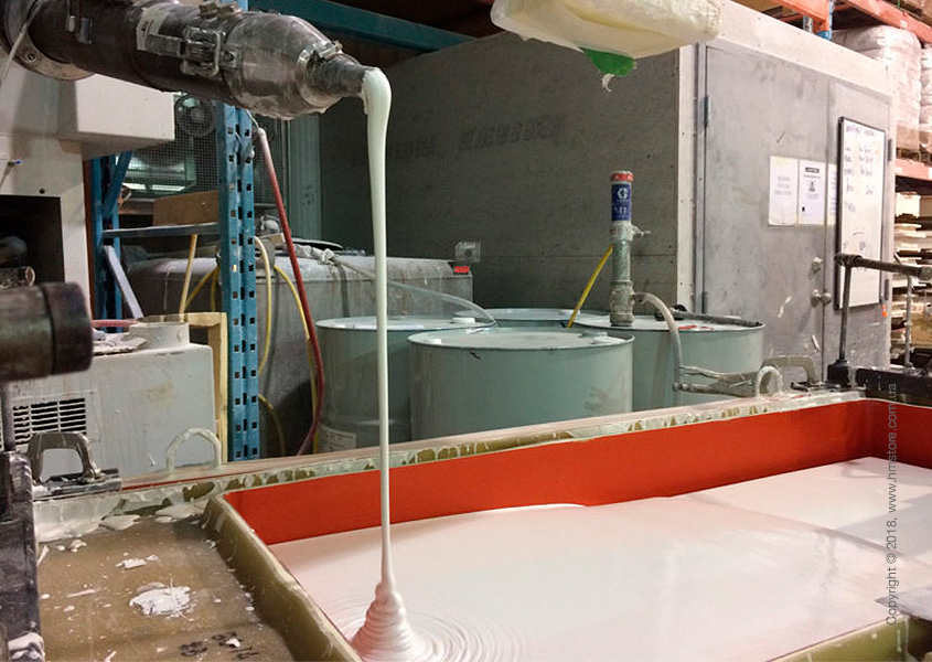 Покраска и формовка. Материал «Wetmar BiO» вливается в форму под вакуумом, чтобы устранить любые воздушные пузыри и гарантировать однородное качество материала.