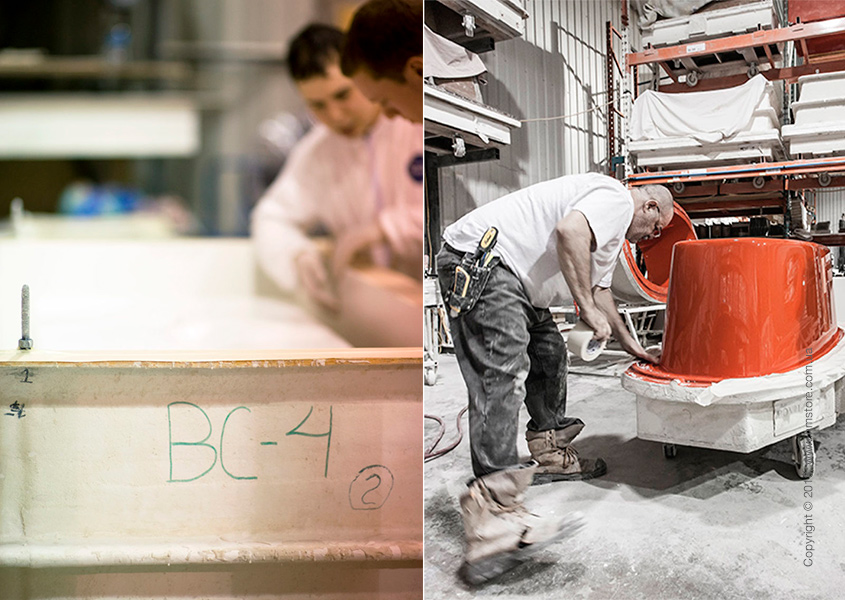 Монреальская компания «WETSTYLE» является производителем роскошного оборудования для ванных комнат, которое создается вручную от начала и до конца и, при этом, отличается современным и оригинальным дизайном. Каждый продукт создается под заказ в Канаде с тщательным вниманием к качеству. К примеру, они тратят 3-6 часов на ручную отделку каждой ванны. Их скульптурные ванны создаются из специального материала, который называется «WETMAR BiO» и является единственным в этой отрасли органичным композитным материалом с твердой поверхностью, состоящий из смеси растительной смолы и натурального камня. Компания поделилась с нами тонкостями производства одной из своих современных ванн.