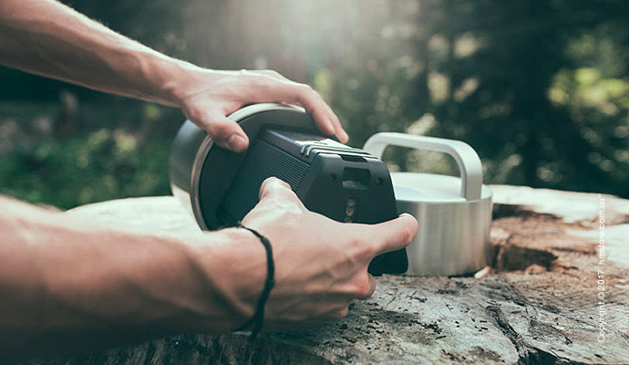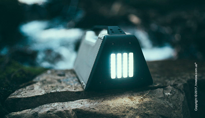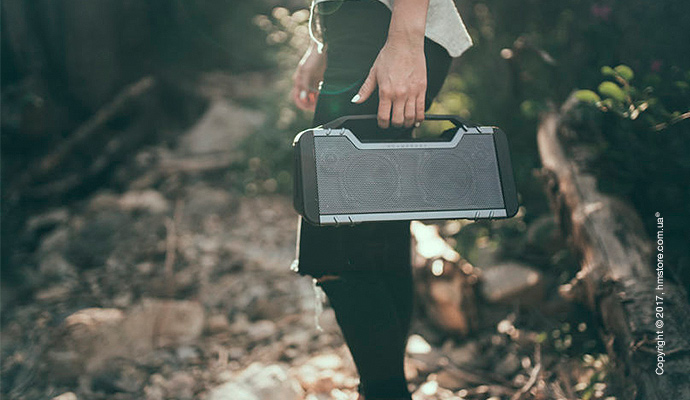 Колонка может работать в течение 20 часов с возможностью использования ее в качестве аккумулятора для любых USB девайсов. Кроме того, в ней есть сигнальный фонарик 3-в-1, установленный в качестве удобной меры предосторожности. Весит колонка всего 2кг, и имеет удобную ручку для переноски.