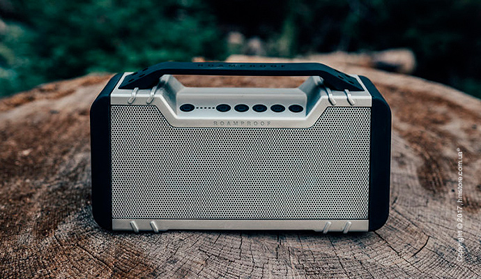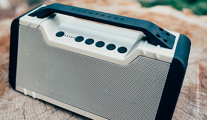 «Macro.II» – меньшая по размеру и более компактная колонка, которая весит всего 1кг и способна работать до 15 часов. Она оснащена двумя 2” широкополосными динамиками и двумя пассивными низкочастотными излучателями. Она может быть подключена к любой колонке от «Roamproof» для создания стереоэффекта.