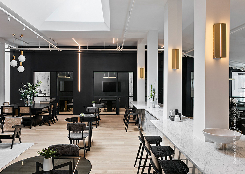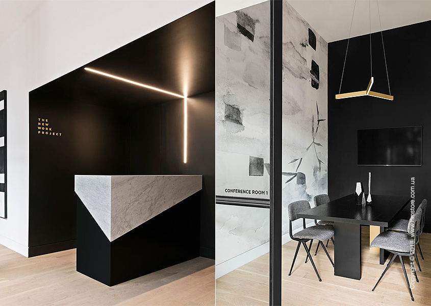 Спроектированный бруклинской дизайнерской студией «The New Design Project», «The New Work Project» является рабочим помещением для тех, кто занят в креативной индустрии, включая рекламу, пиар, маркетинг, архитектуру и дизайн, телевидение, кино и медиа, моду и издательство. Дуэт James Davison и Fanny Abbes хотели создать место, где все члены этого сообщества могли бы жить, работать и развлекаться. В результате, «The New Work Project» отличается черно-белым дизайном интерьера (включая черно-белые стулья, обои, произведения искусства и книги). Эта классическая тема акцентируется латунными элементами, мраморными столешницами, плетеными текстурами и натуральными растениями. Вся мебель создавалась в «The New Design Project», а также под заказ бруклинскими брендами «J.M. Szymanski» и «Eskayel».
