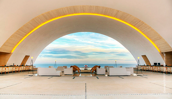 Отель «Hotel Mar Adentro», спроектированный Miguel Angel Aragonés напоминает утопический городской пейзаж, который будто плавает на воде. Этот отель является миниатюрным центром минимализма. Особенно впечатляюще он выглядит в те моменты, когда солнце медленно начинает попускаться в океан.