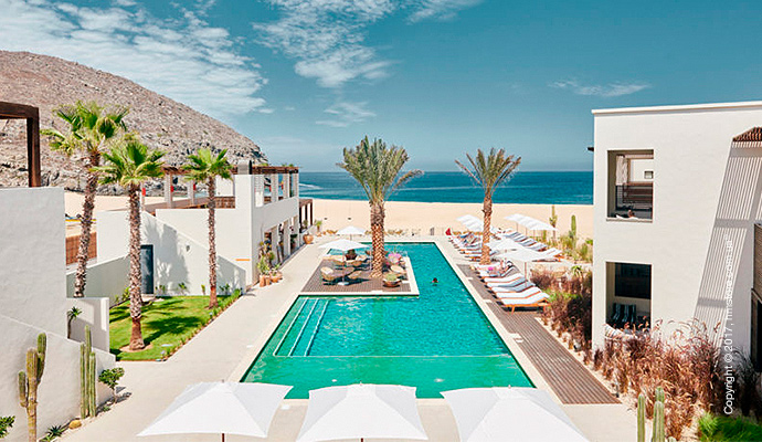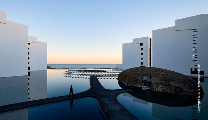 Отель «Grand Velas Los Cabos» от архитектора Ricardo Elias отличается просторными гостевыми номерами с видом на океан, бассейнами с видом на пляж. В океане регулярно можно увидеть дельфинов и скатов – этим зрелищем можно наслаждаться, лежа на удобных кроватях прямо на пляже. Кроме того, отель предлагает еще и огромный спа-центр, который посетить просто необходимо.
