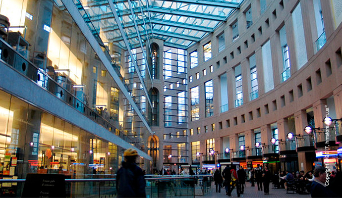 Ванкуверская публичная библиотека, спроектированная Моше Сафди (Moshe Safdie), немного напоминает древний Колизей в Риме, но с современными чертами.