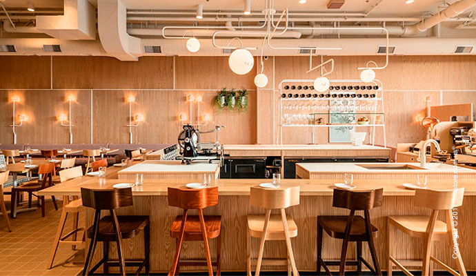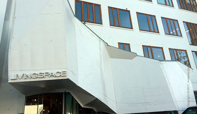 Сложно пропустить «Livingspace», поскольку здание отличается массивной, геометрической лестницей, которая встречает посетителей снаружи. Магазин был спроектирован креативным директором «Bocci» Омером Арбелем (Omer Arbel). Здесь можно найти мебель, лампы и аксессуары от топовых международных брендов.