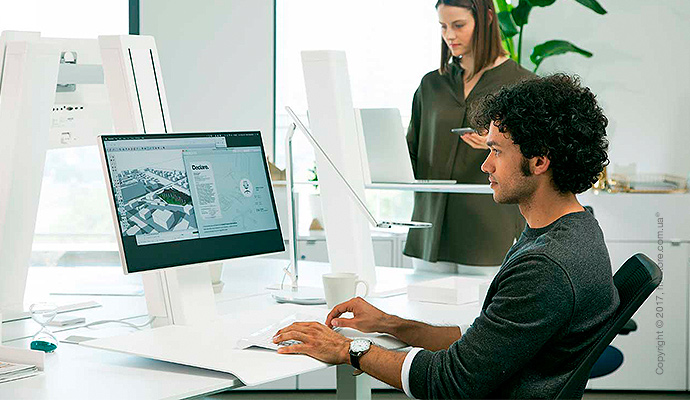 Пионеры эргономичного дизайна «Humanscale» недавно предложили новый продукт для обустройства рабочих мест, на которых можно работать и сидя, и стоя. И он – портативный! «QuickStand Eco» – это регулируемая по высоте стойка, которая отличается утонченным и минималистским дизайном, а также простым устройством. Используя множество экологичных материалов, дизайнеры создали ее так, чтобы благодаря нескольким деталям и элементам можно было сохранять минимум занимаемого рабочего пространства.
