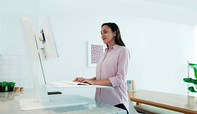 «QuickStand Eco» можно легко переносить из вашего дома в офис, делая его практичным дополнением для рабочей повседневности. Высота регулируется очень легко, поэтому, если вам захотелось немного постоять, провести эту небольшую трансформацию не составит большого труда. Кроме того, эта стойка совместима с программой «OfficeIQ» от «Humanscale», которая может отправлять вам уведомления, напоминающие время от времени менять позу.