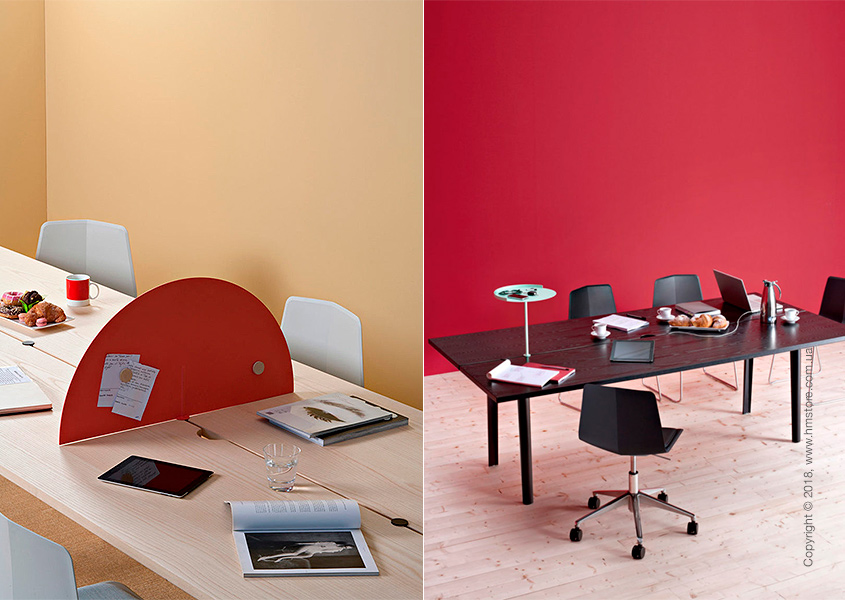 Дополнительные аксессуары помогают конфигурировать общий стол для разных работников так, чтобы он был полноценным рабочим местом, а не просто столом. Offset доступен в нескольких размерах, а каждый из аксессуаров имеет множество опций, позволяющих делать его полностью индивидуальным. Кроме того, можно даже менять ножки, создавая отличительный вид.
