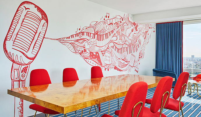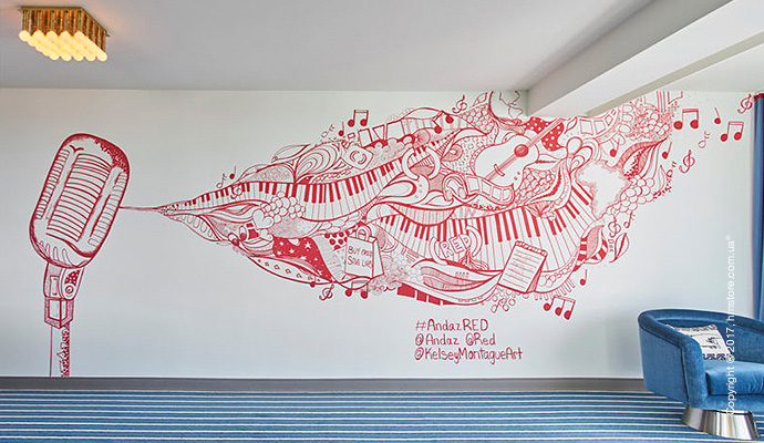 Работая над номером в отеле «Andaz West Hollywood», Джонатан Адлер (Jonathan Adler) решил выбрать стиль, в котором сочетается рок-н-ролл и элегантный гламур. На самом деле, это не совсем номер. Совместно с «(RED)» (организация для борьбы со СПИДом, основанная Боно и Бобби Шрайвером) дизайнер и отель поддерживают борьбу против этого недуга. За каждый заказ номера под названием «(ANDAZ)RED Suite», 30% стоимости уходит на благотворительность.