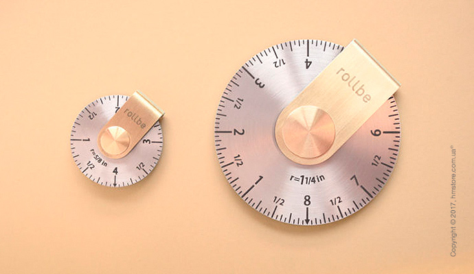 «Rollbe» – это круглая линейка из нержавеющей стали, которая способна измерить практически все – как прямые линии, так и изгибы. Она доступна в двух размерах – суперкомпактная (4 дюйма и 10см) и более крупная версия (8 дюймов и 20см).