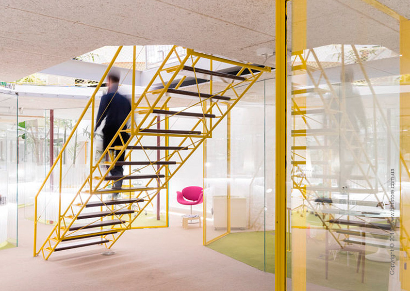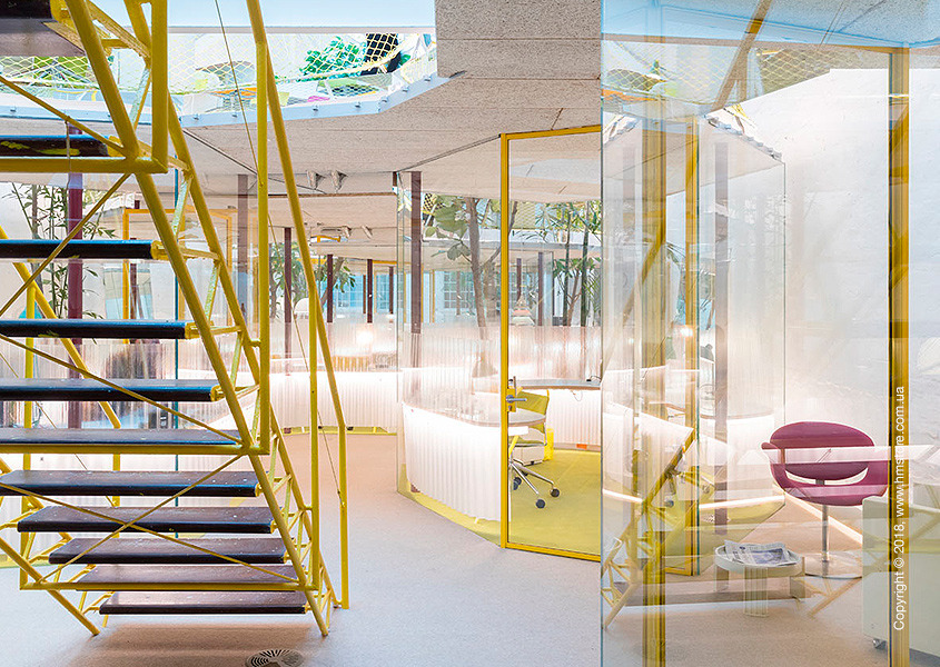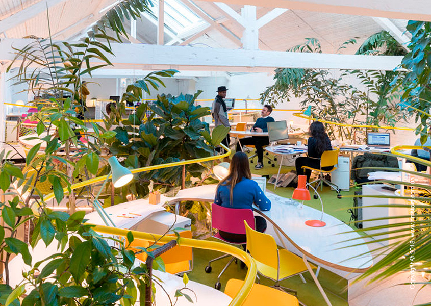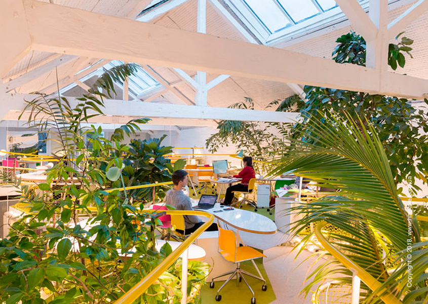Офис занимает площадь 1 115 кв.м. внутри старого здания с историческим прошлым. По всему интерьеру можно увидеть акценты в ярких цветах, натуральное освещение и островки с растениями, некоторые из которых растут прямо из пола. Наряду с современными благами, офис сохранил и восстановил исторические детали.